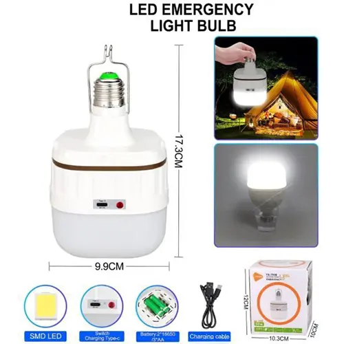 در قسمت بالایی این محصول، یک دسته فلزی تعبیه شده است تا بهسادگی داخل چادر آویزان شود. نور این محصول به حالت های کمنور، پرنور کار میکند.